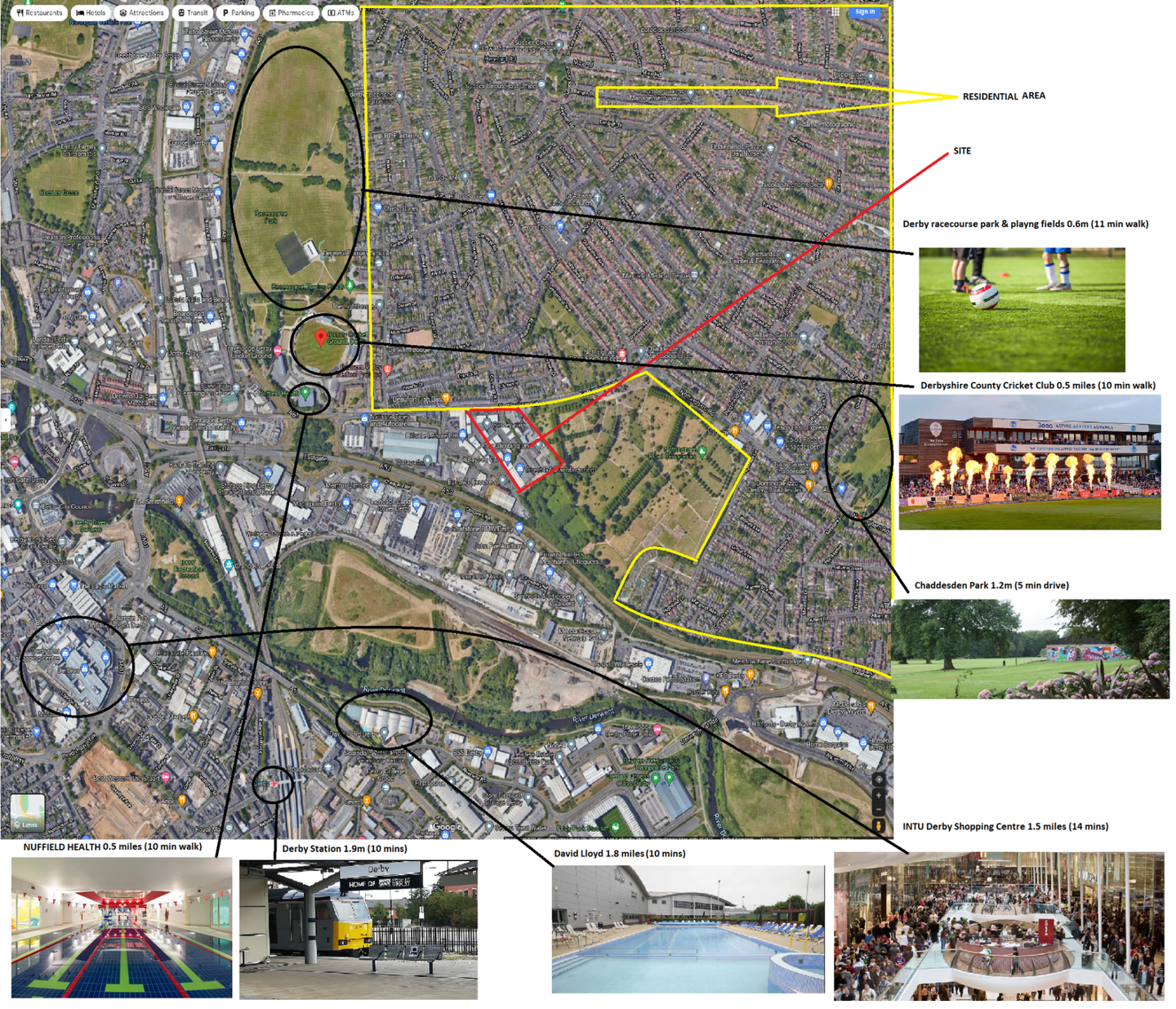 The site is surrounded by established residential estates that are served by high quality local amenities. The project itself is located within a site owned by the developer and we have plans to convert the entire site into residential housing. It is well located for local employers like Rolls Royce, Toyota and Bombadier, not to mention the Intu shopping centre off Pentagon Island. Derby County Cricket Club, Derby Racecourse and various parks and gyms are all very close to the development. The road opposite the site leads to a very large residential area, highlighted in yellow below. Demand in the region is high and local agents have confirmed available properties are occupied very quickly.